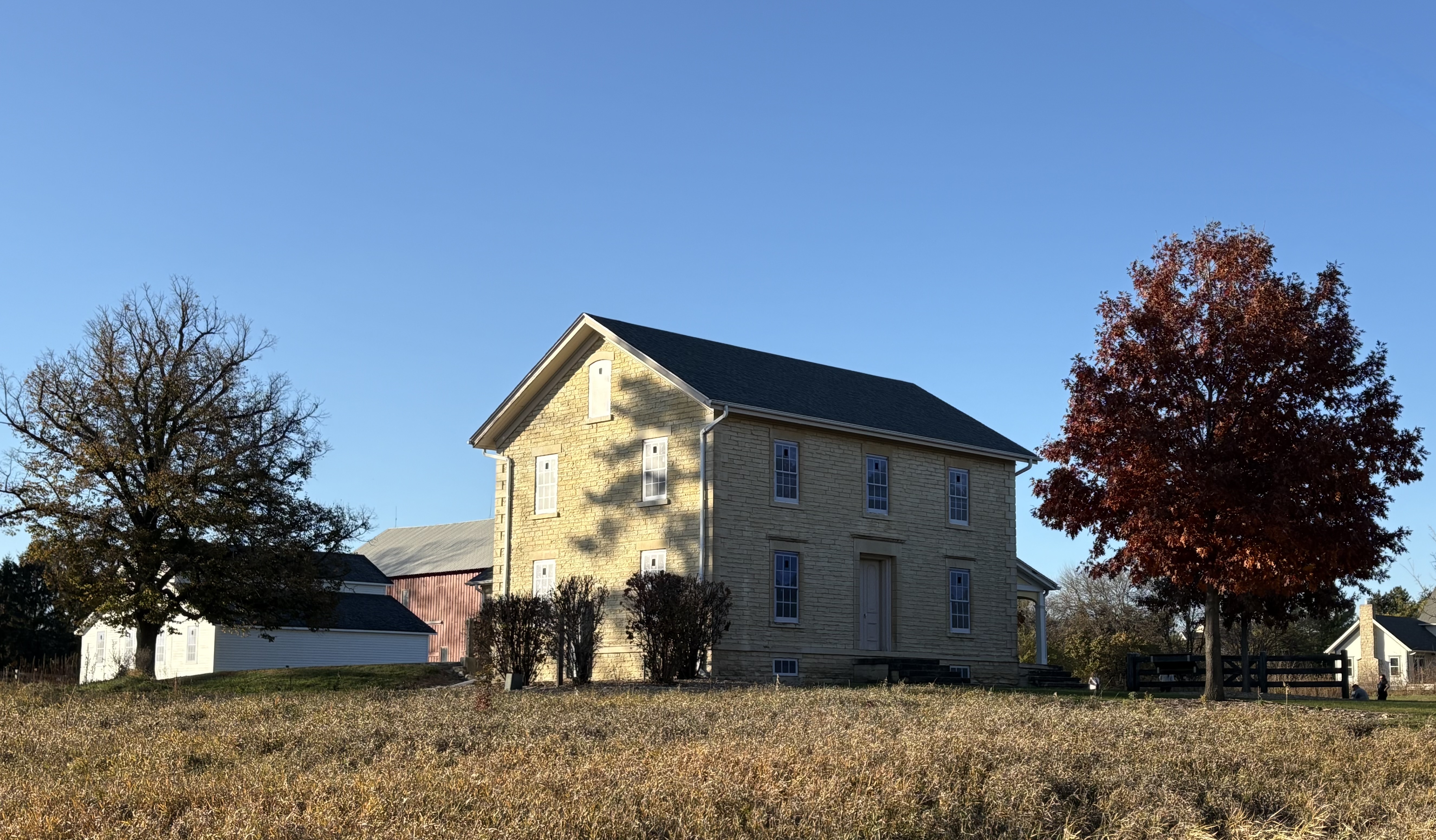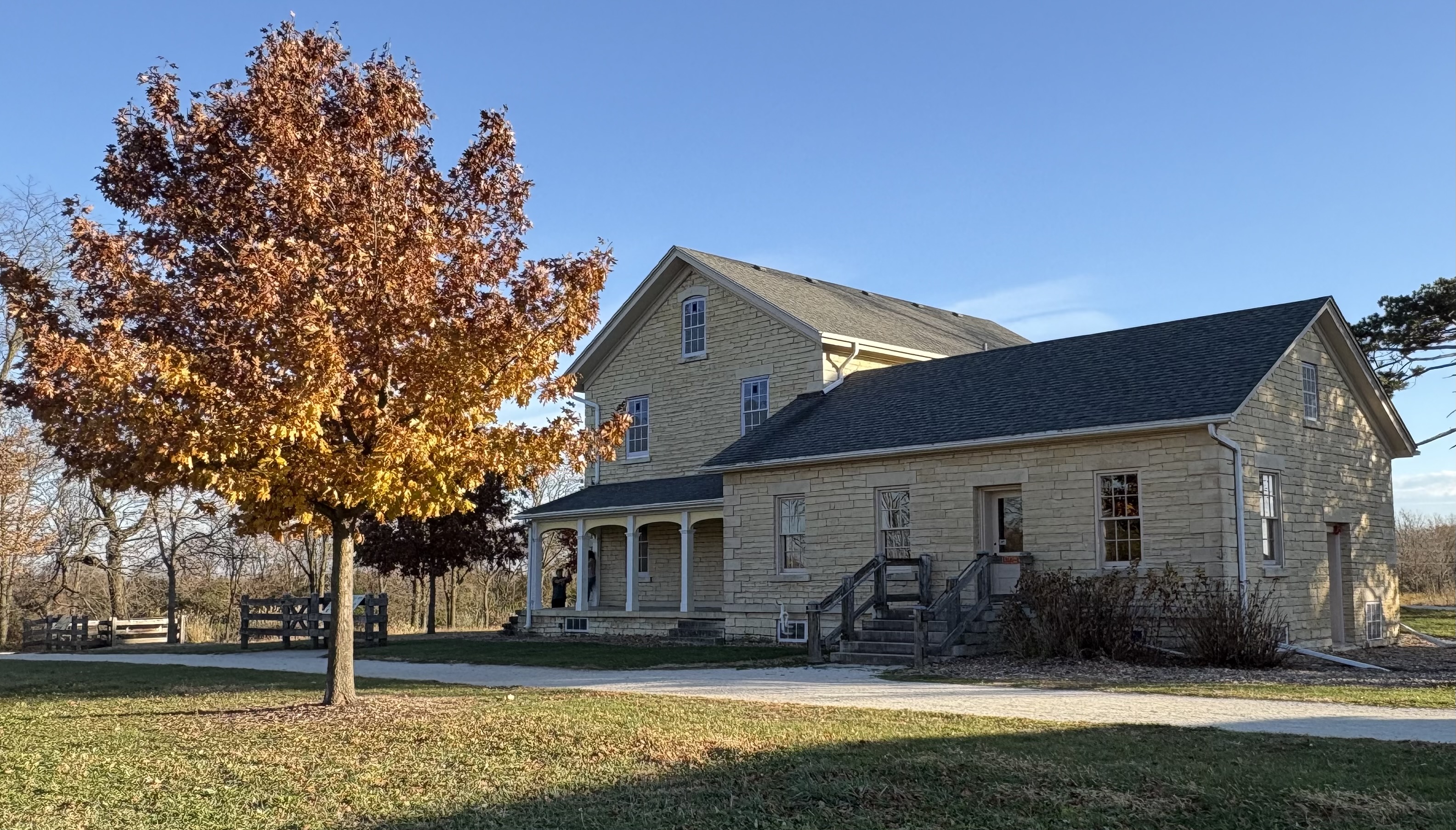 The farmstead sits on a parcel of land alongside the DuPage River at the end of the winding drive leading away from the main roads. You can tour the property, read all about the Clows as well as some of the other families that settled in the area, and meander along the paths that lead to the river. In the open area you’ll find the original limestone house, a wooden structure that used to be a residence, and of course the big red barn. And with the fall colors blazing in the afternoon sun it was like a picture perfect step back in time.